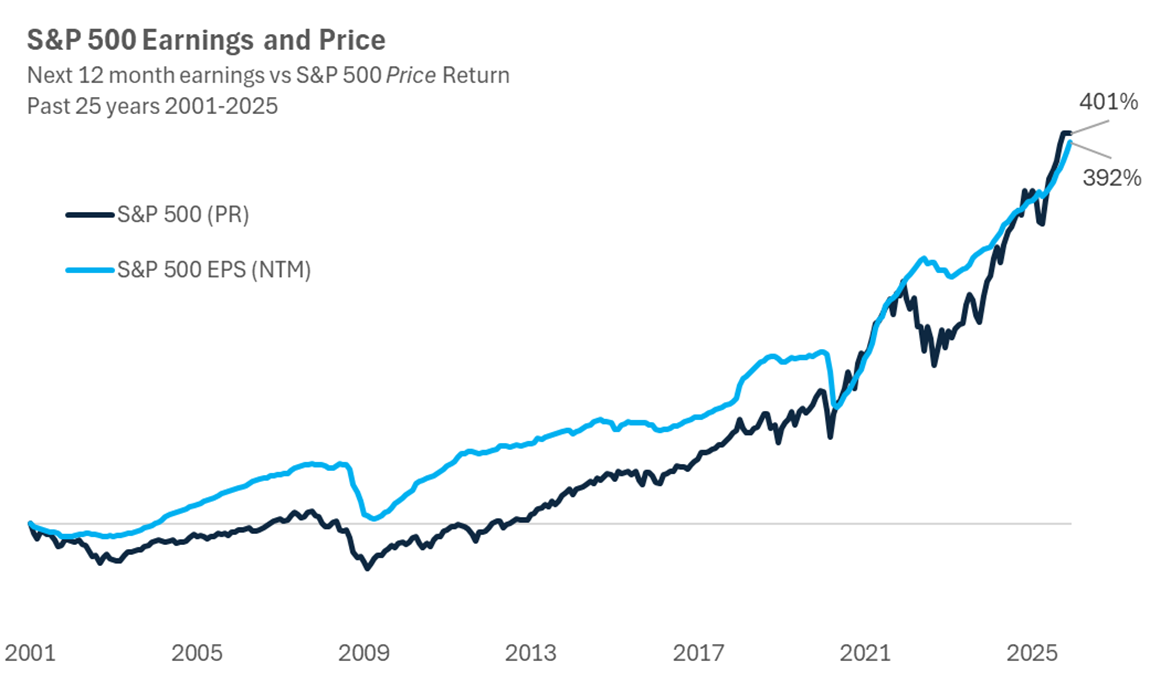 In Q3 of 2025, earnings of the companies that make up the S&P 500 grew at about 13% year over year. And based on analysts predictions, I won't be surprised at all to see earnings growth exceed 10% again in Q4 once the reports have all been made public.